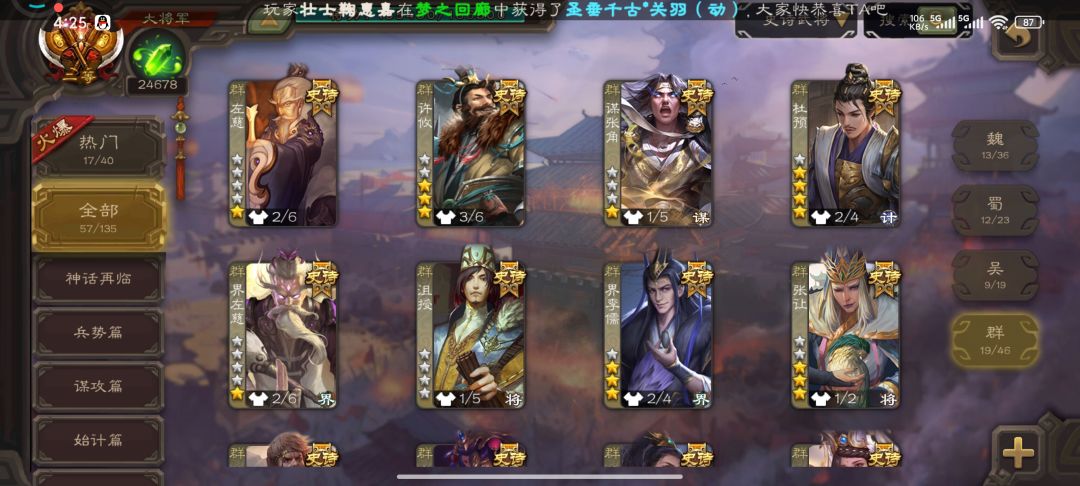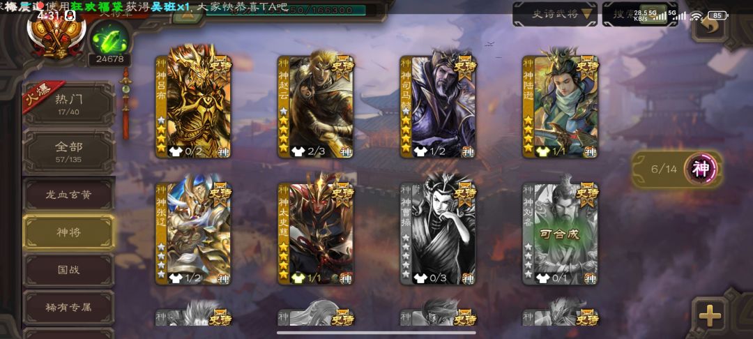 目前这个将面,排位斗地主军八都玩,精品徐庶 鲍信 闫象 黄月英等,攒了56珠子,神鲁肃和谋诸葛怎么说,感觉谋诸葛第二轮开始有点乏力甚至活不到第二轮,神鲁肃的机制玩法会不会坚持更久一些不被淘汰。或者说再攒攒换个别的[doge]