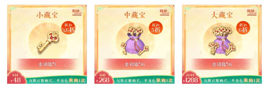 3档金钥匙礼包最低3.6折,直播期间,随时可抢购!