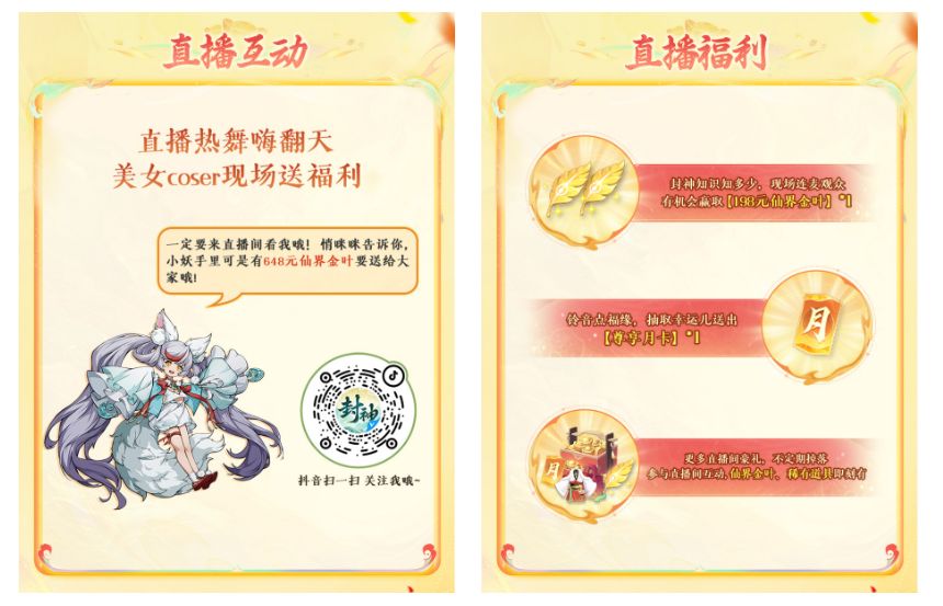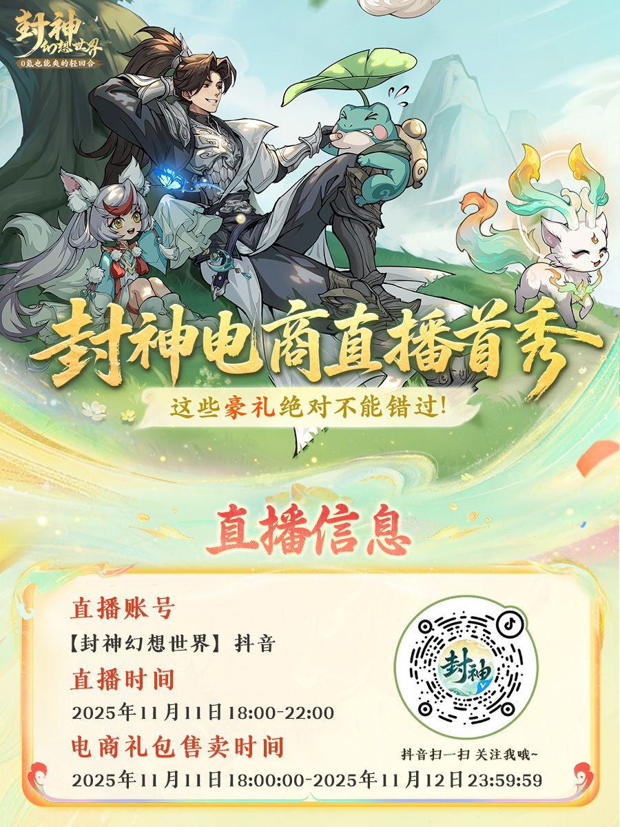 11月11日18:00~22:00,小妖在封神抖音官方直播间带着福利等大人们~