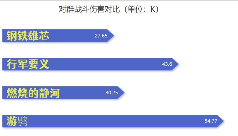 分别在对单、对群环境下进行伤害测试。角色等级58,专精拉满,不带潜能插件,武器58级突破三。对比目标为专武【游鸮】、SSR级武器【燃烧的静河】,SR级武器【行军要义】和【钢铁雄芯】。