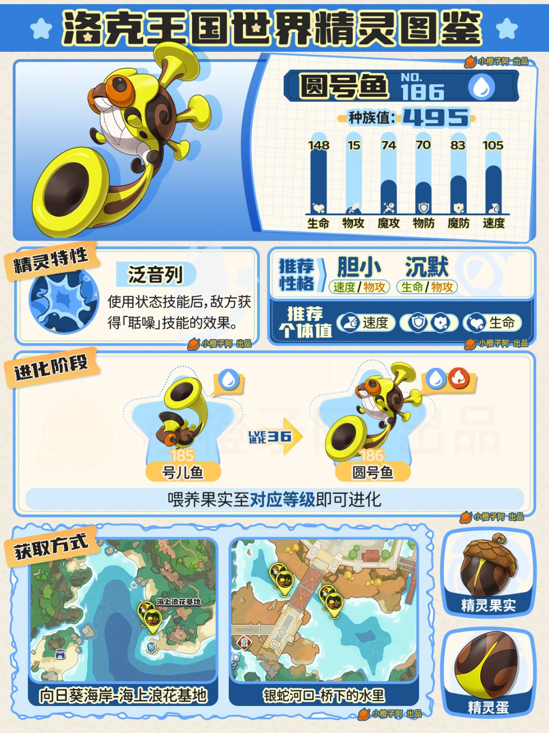 ②图鉴性格、个体值并不是唯一,由于精灵配队多种多样,推荐的性格与个体值会出现差别,有可能橙子图鉴中并没有出现,小伙伴同样可在评论区提出来,橙子会根据现实情况进行修正。