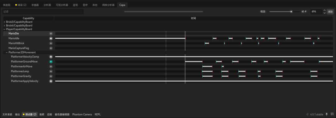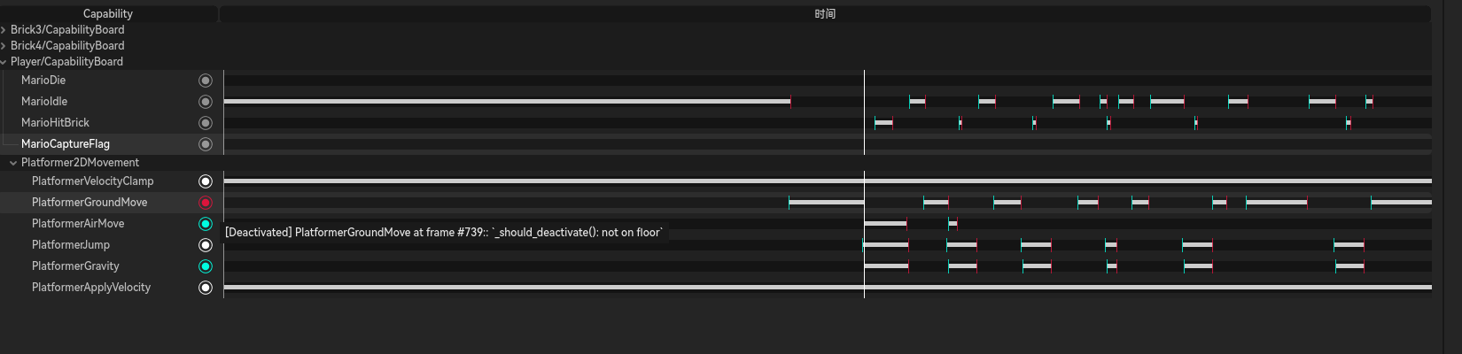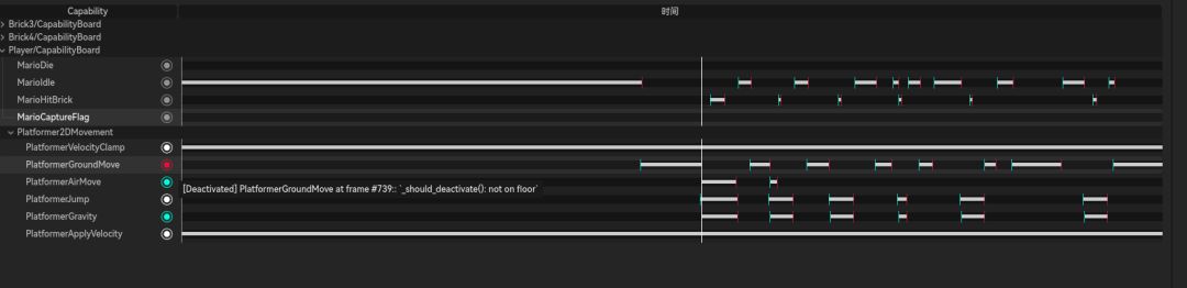 将指示器移动至对应的激活或失活帧可以看到调试信息,这极大地方便了我们的玩法开发。我们在《循环破译者》中大量使用 Capabiilty。