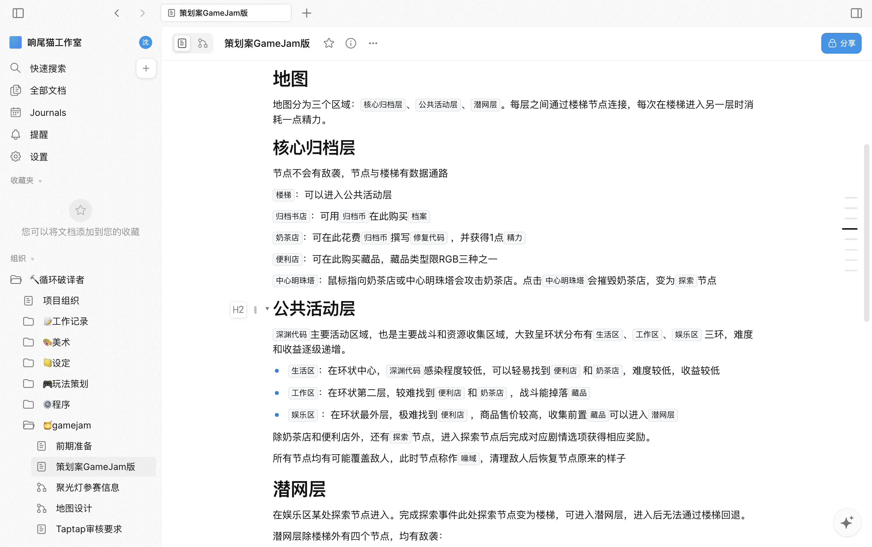 游戏机制就不要让AI做了,传统手艺不能丢。咱们之前不是说一条条零散地列出核心玩法嘛,这时候就可以让AI来整理格式,重新组织成一份看起来很专业的文档。这样,当程序再来问策划的时候,就再也不怕找不到了!
