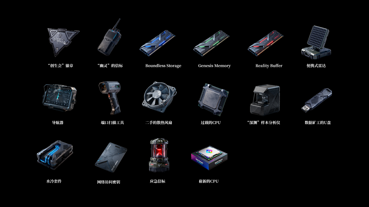 与之形成强烈对比的是我们的藏品系统。我们选择使用真实渲染来制作每一件物品的美术,并保留其作为“旧时代科技文物”的所有使用痕迹与物理细节,这种极致的物质感,与虚拟建筑的黑白几何体并置,旨在让玩家通过发现使用这些真实的“遗骸”,切身感受文明断层的深度与技术的沉重历史。