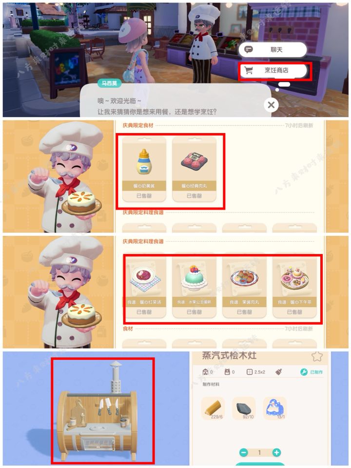 1、可以先去找马西莫买限定食材:奶黄酱和经典肉丸;
