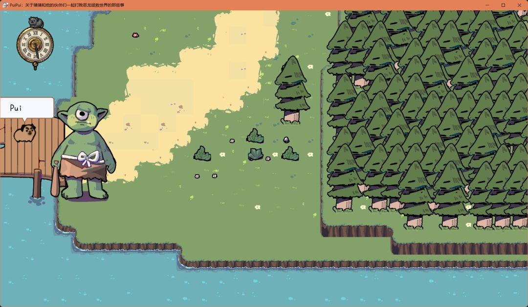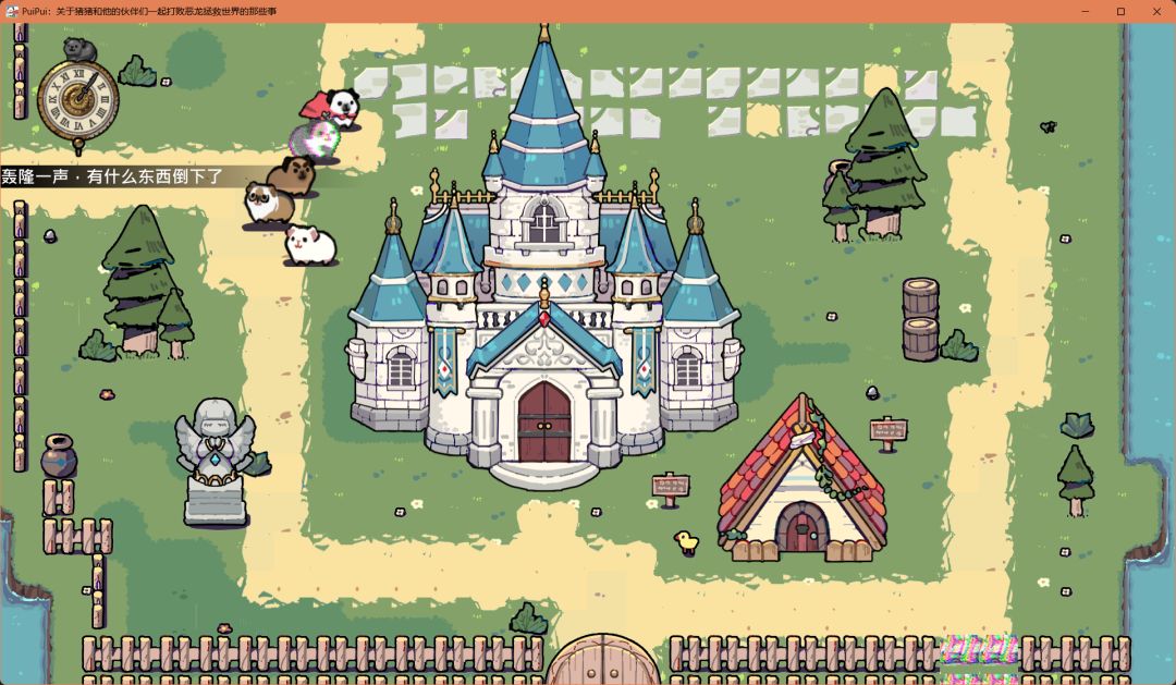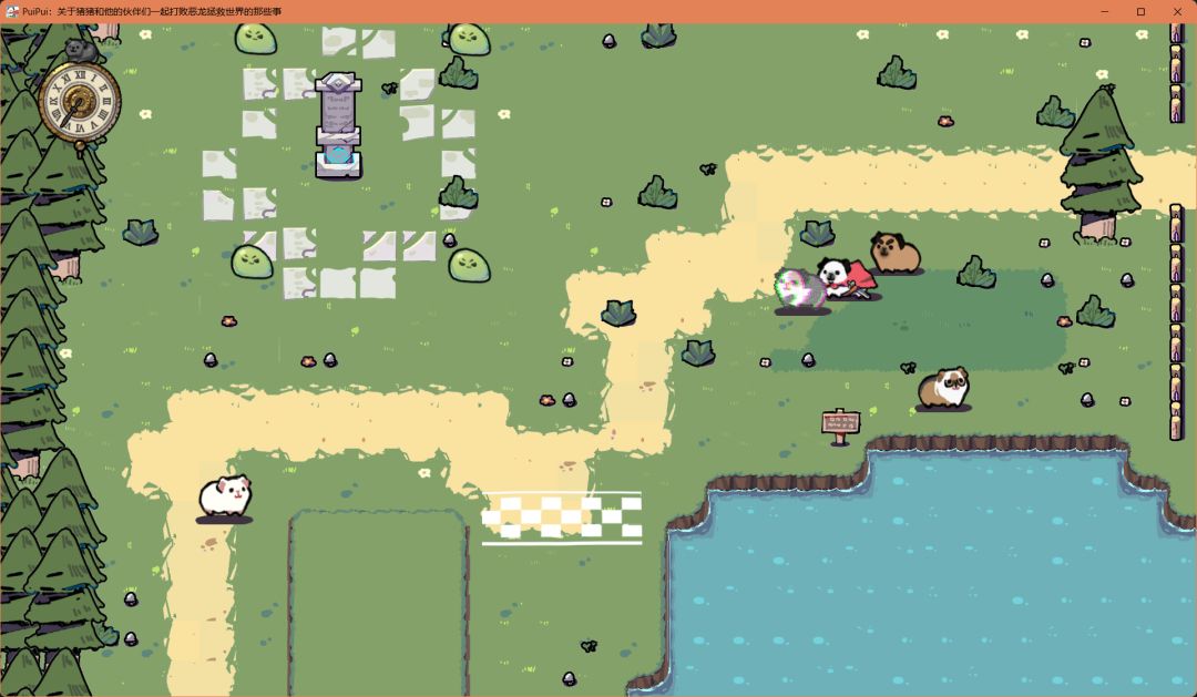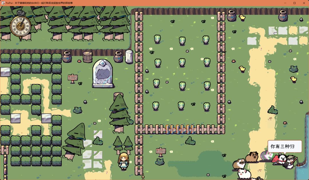 接下来带着便便猪去结交博学猪,帮它炸死祭坛的四个史莱姆,就可以带上它(能力是首位时可以看懂所有告示牌)。此时左下角也有一只兔兔猪