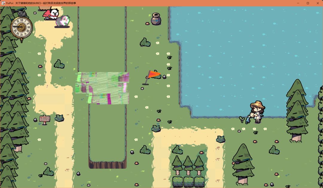首先沿着往出生场地的最右上角走,我们会遇见第一只可攻略的猪:故障猪(穿墙)