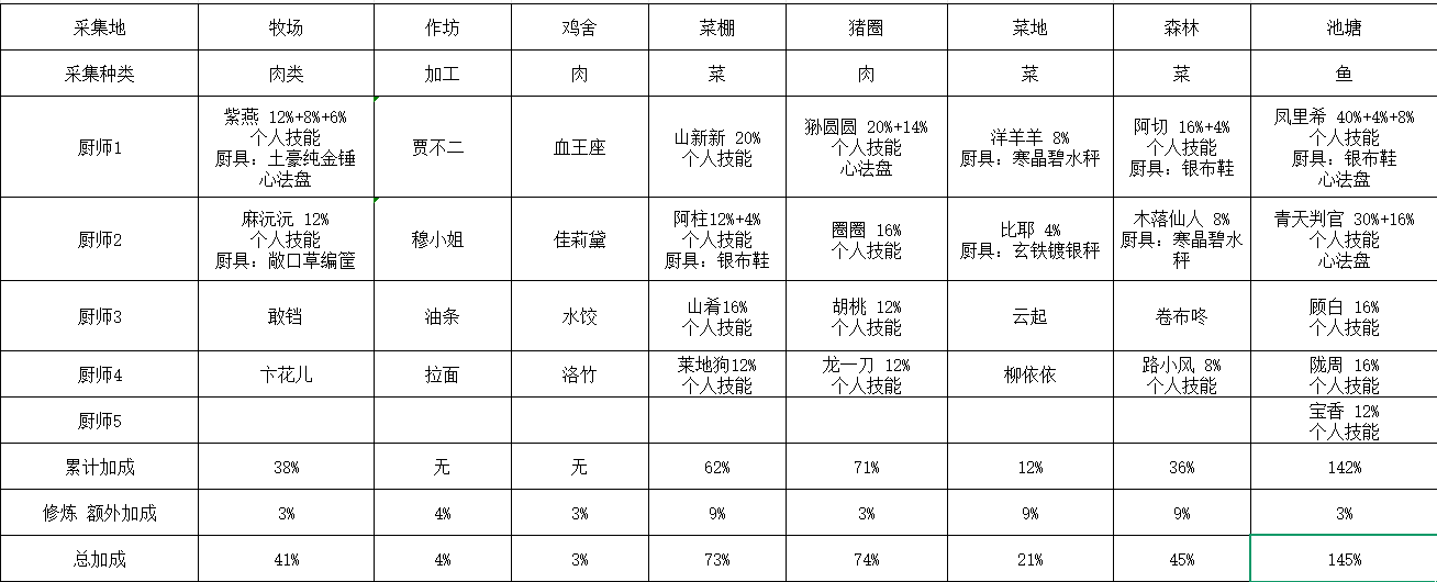 之所以制作表格也是纯粹记录一下情况,看看有哪些提升,安排相关采集厨尽早就业,尽管目前的食材库存挺多以前有个大胆的想法(也在论坛发过帖子):就是等耗光仓库里的所有食材再重新采集,但后来感觉太难了,如果碰上主线 哪怕新手池买菜也挺累,尽管有点击器
