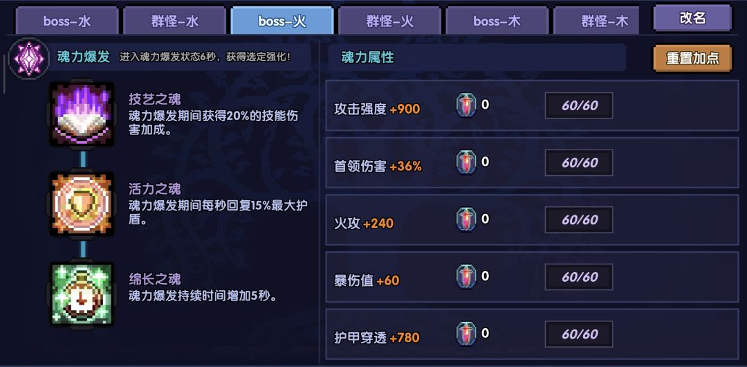 属性洗练:攻击强度、全能属攻/火攻