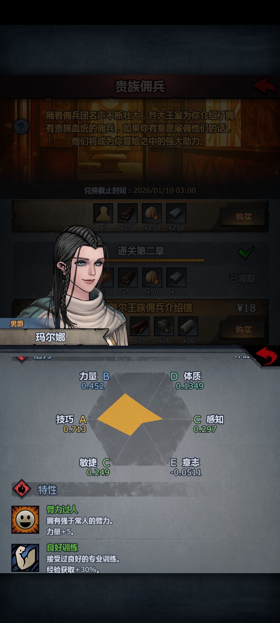 记得有一个 +3力量 +5意志的饰品,差这点可以带上转职。