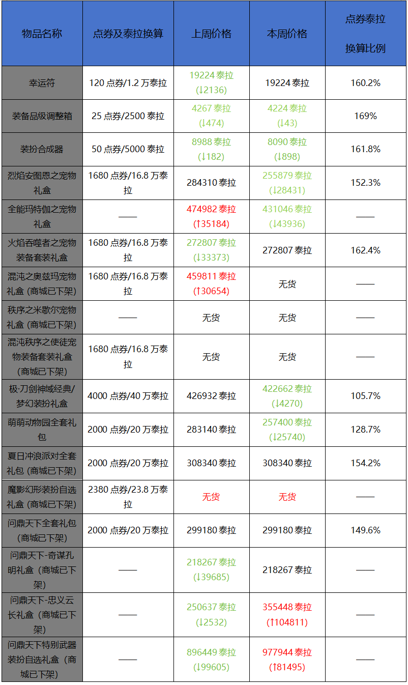 本周点券泰拉最佳兑换道具为:装备品级调整箱