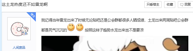 有玩家感叹土龙热度太低了,贴吧都没啥人亮斩龙记录