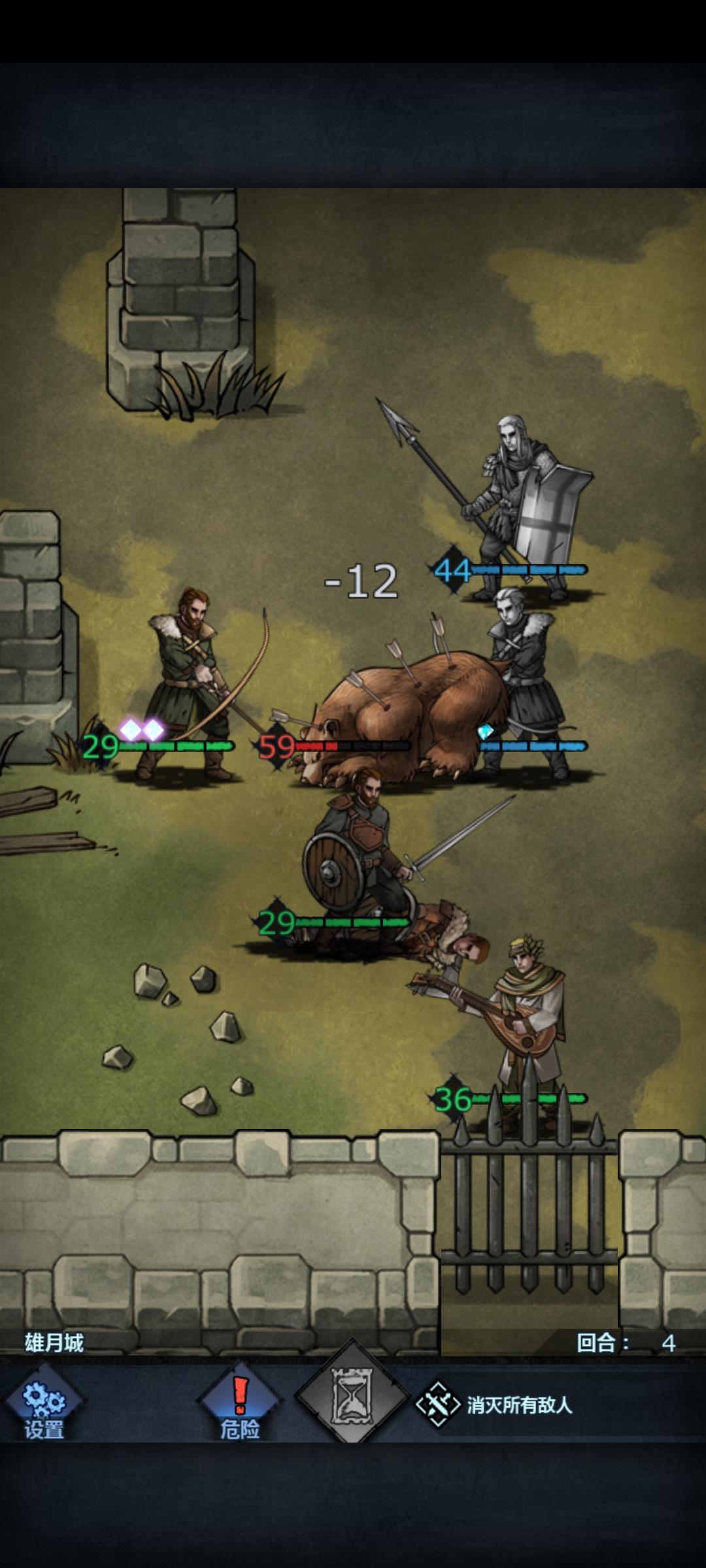 前两场正常打,第三场熊不会主动攻击但是会反击,让友方近战先打你近战才能动手。第四场原地跳回合就行。