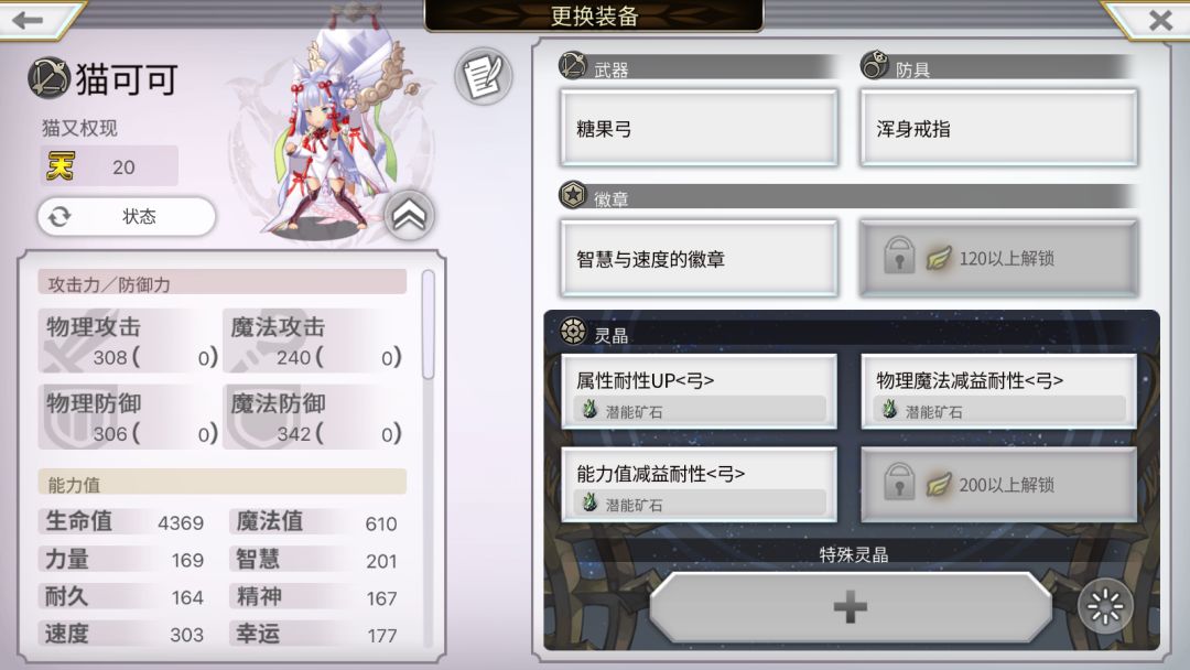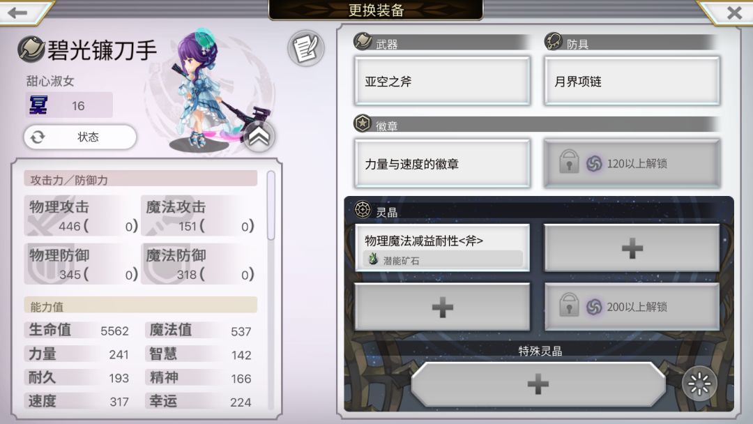 装备我随便配的,带了物理魔法减益耐性(武器)灵晶对抗BOSS降低魔耐的技能