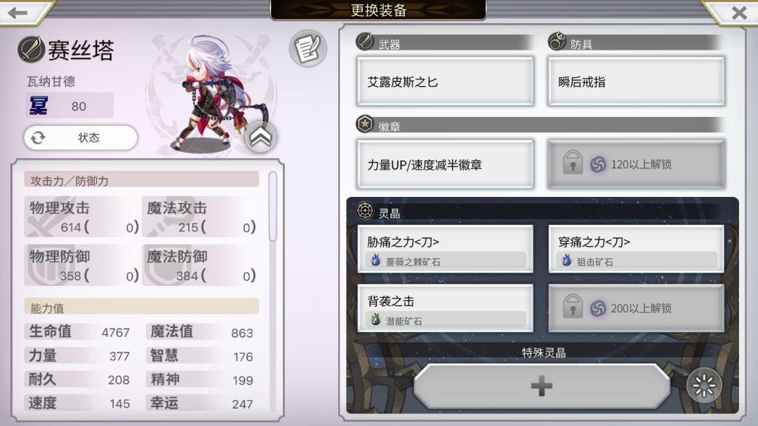 希望武,力量/速度减半徽章,2痛灵晶(狙击+蔷薇)+1背袭