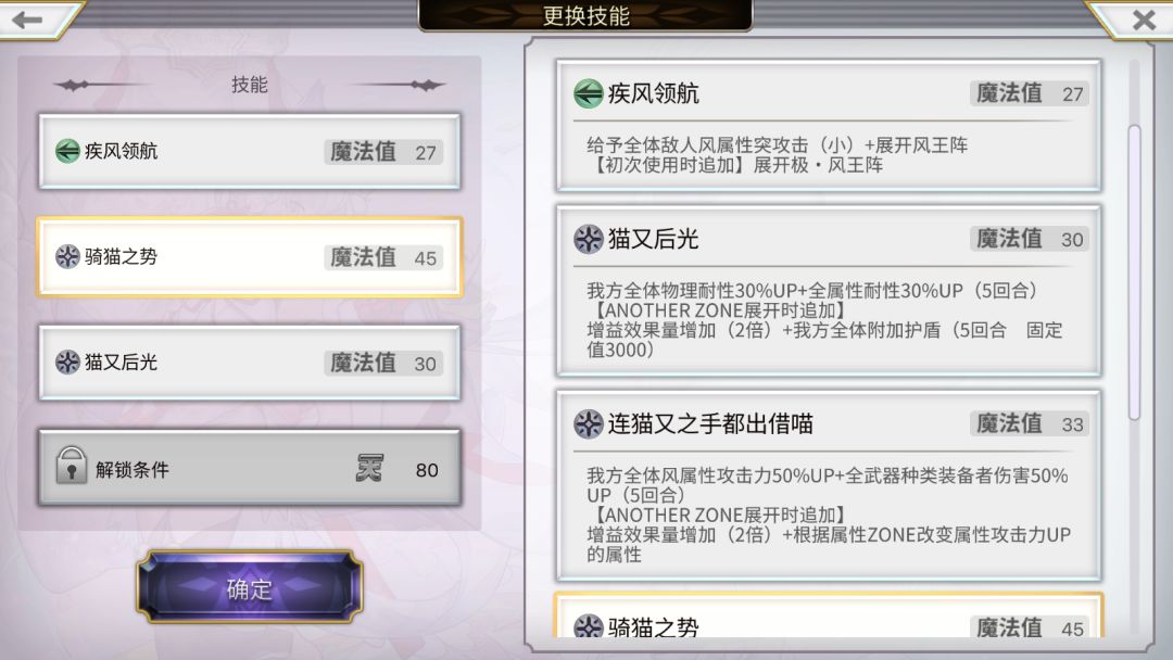 猫可可提供了风阵展开,全队力速智增益&血蓝回复,全队属性耐性提高&护盾