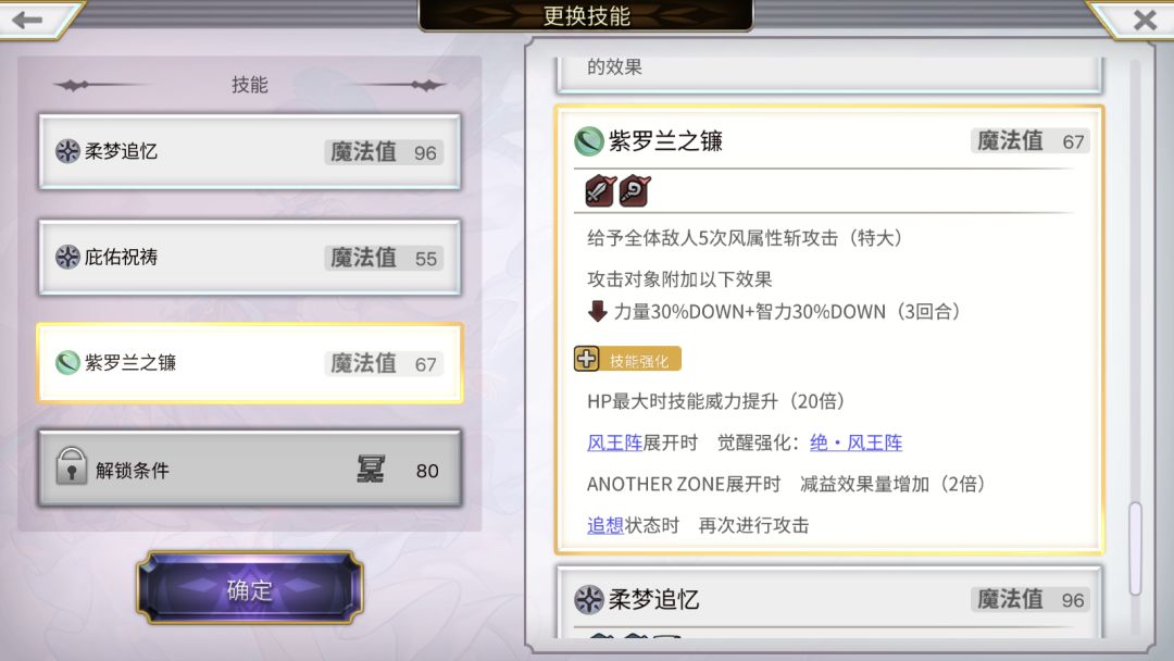 AS碧镰的紫罗兰之镰技能,可在风阵上展开觉醒风阵,并提供60%智力降低DBUFF