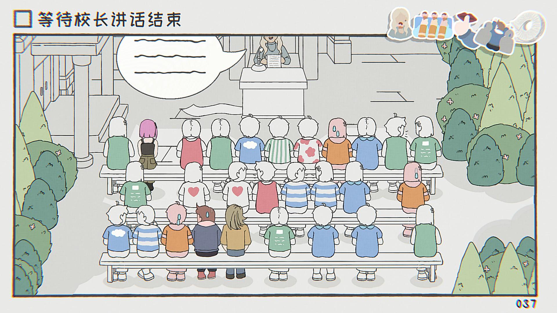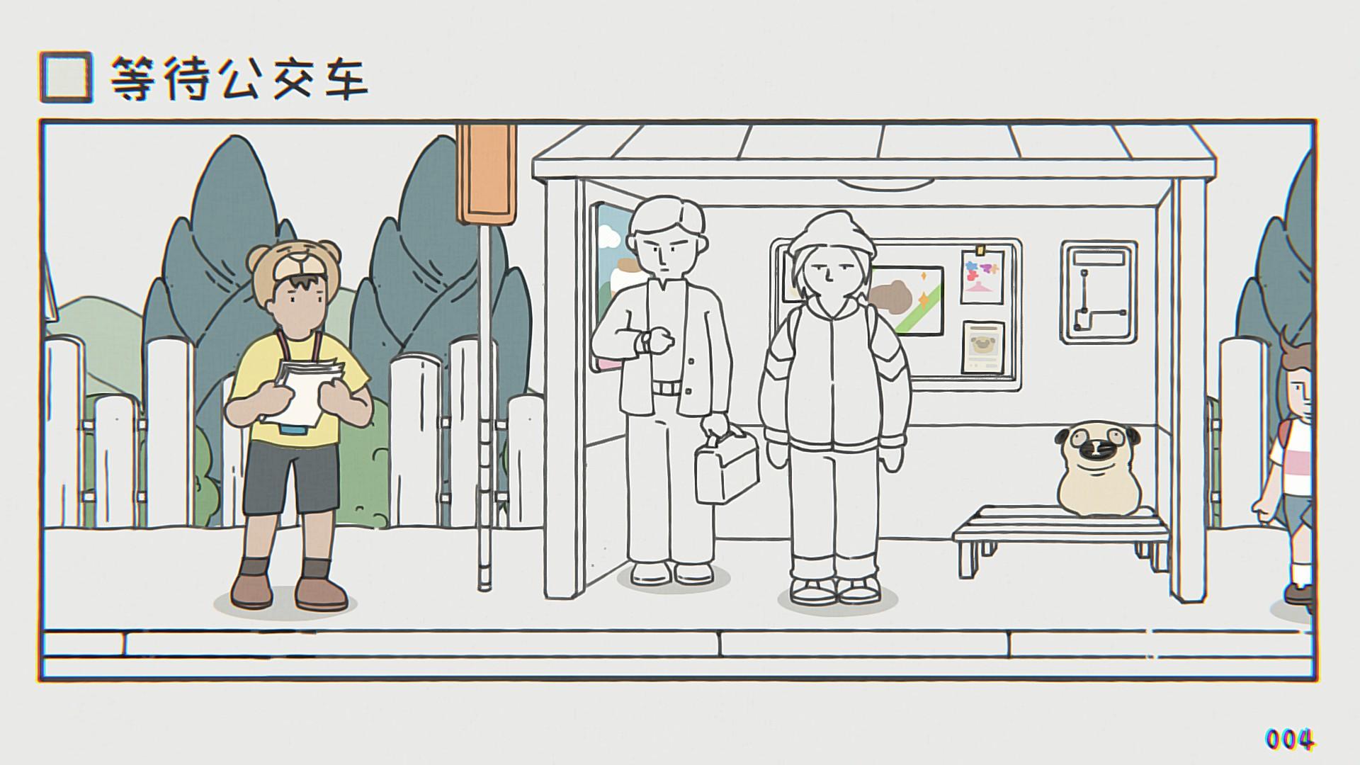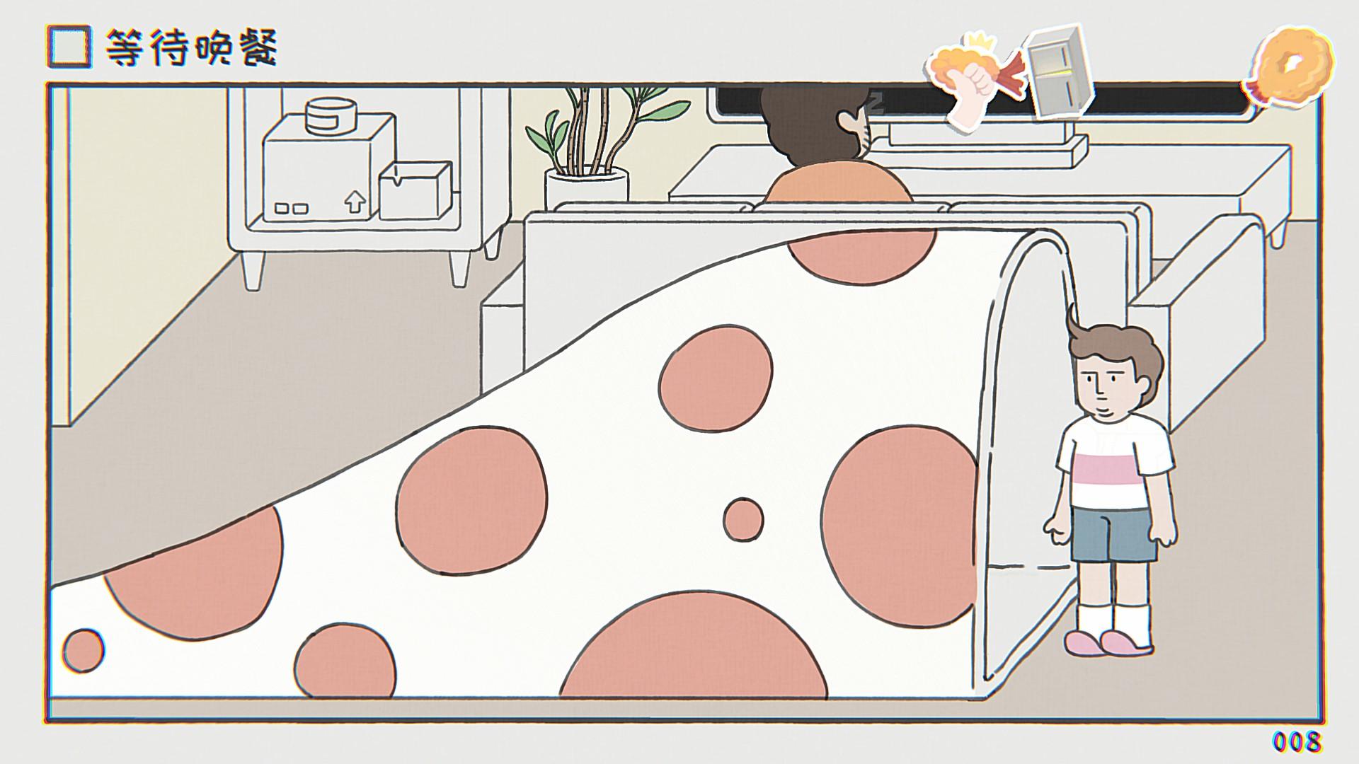 当然,如果这个游戏只能挂机的话,那确实少点意思。在每一个关卡里,都隐藏着不同的挑战和彩蛋。当玩家操作角色到处移动和互动的花,说不定就会发现一些惊喜,例如在“等待出生”的关卡,玩家可以让角色直接插队,然后被人警告;在“等待晚餐”的关卡,玩家可以找到一个类似《哆啦A梦》里的缩小隧道,通过缩小自己体型,来跟小老鼠打个招呼……