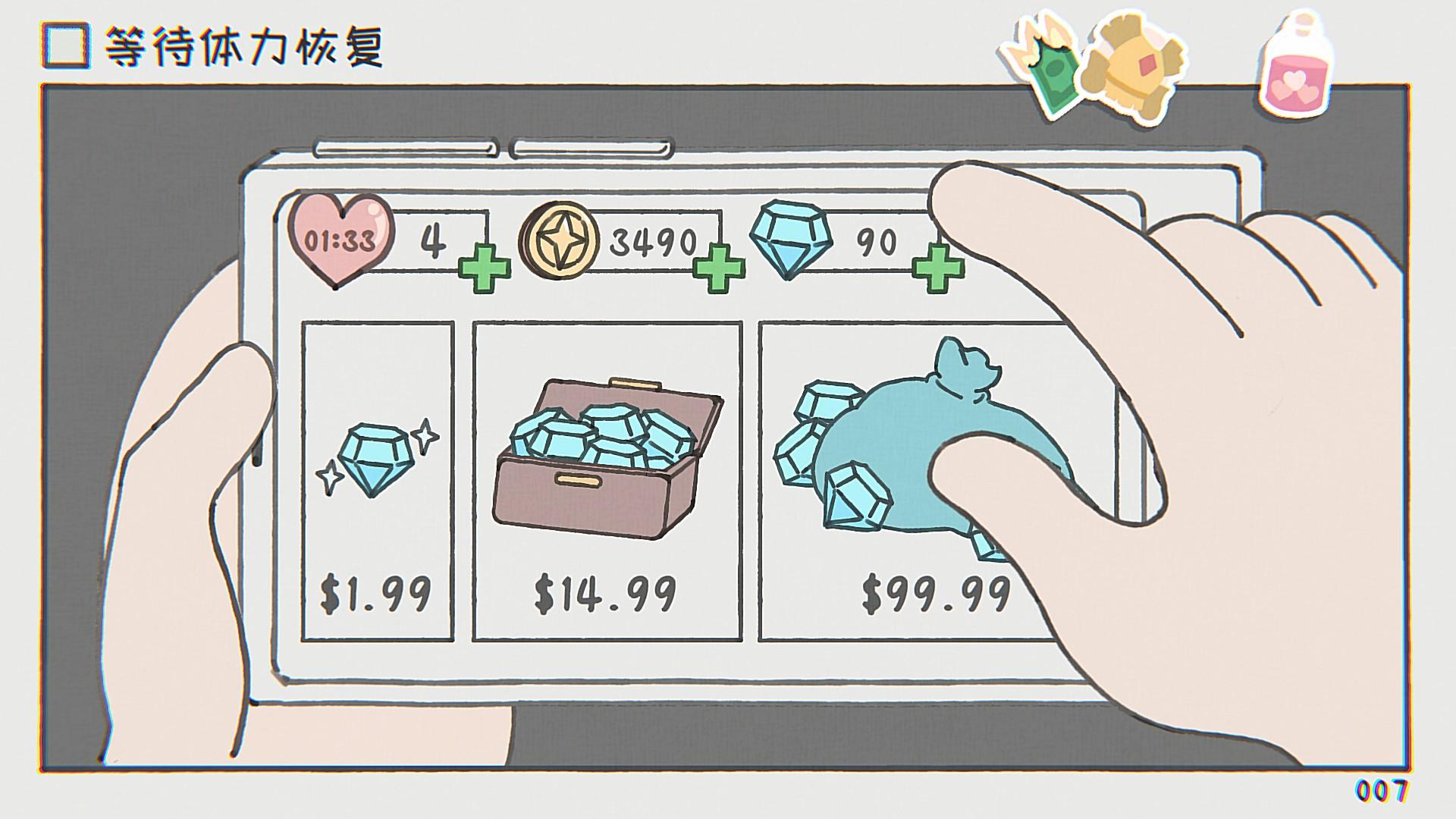 玩家可以选择什么都不做,只用耐心等待每关的计时结算,即可通关。另外,游戏为了防止大家无聊,特意加入了移动功能,玩家可以上下左右移动和互动。这样一来,只要偶尔活动一下手指,即可速通一个游戏,是不是很有意思?