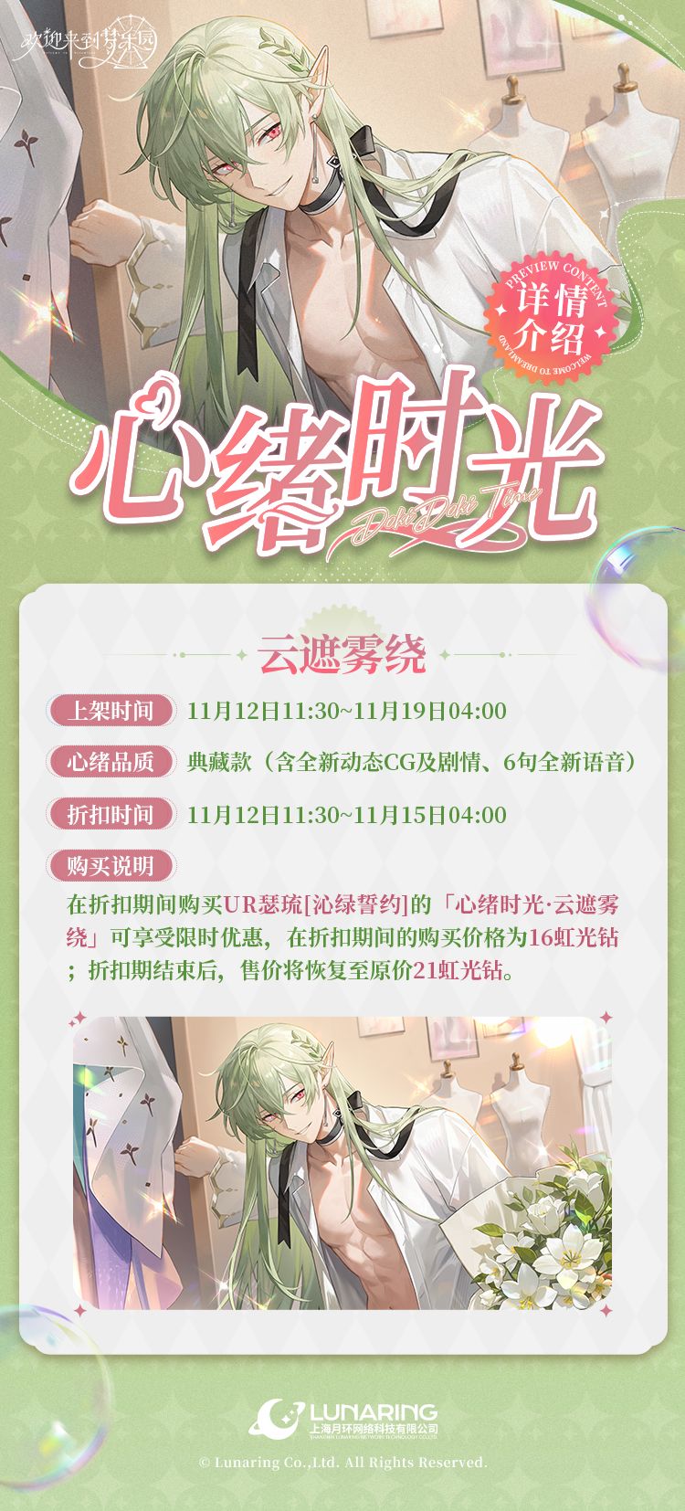 瑟琉[沁绿誓约]心绪时光11月12日维护后~11月19日04:00限时上架!