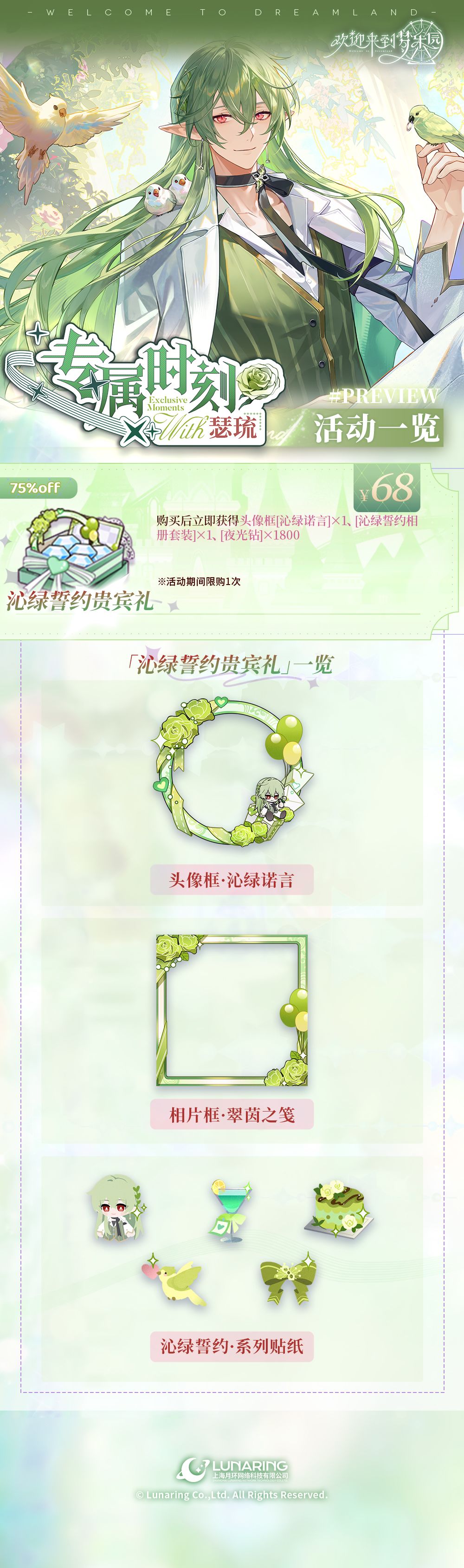 - 专属时刻·瑟琉[沁绿誓约] 招募概率限时提升