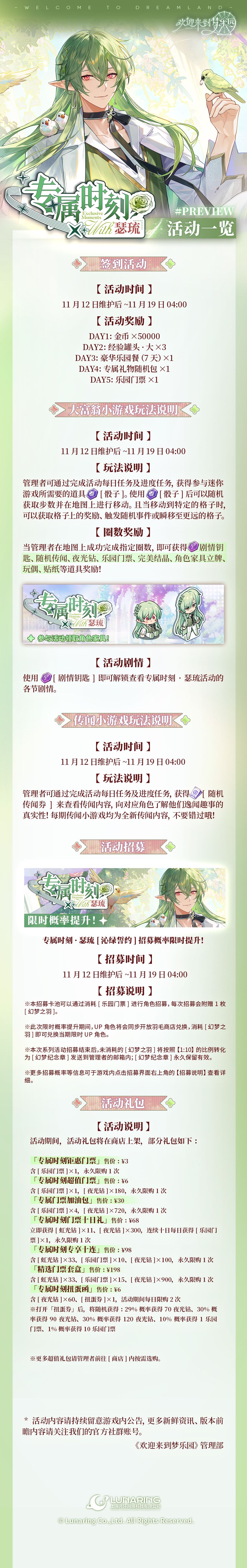 全新迷你活动「专属时刻·瑟琉」11月12日开启!