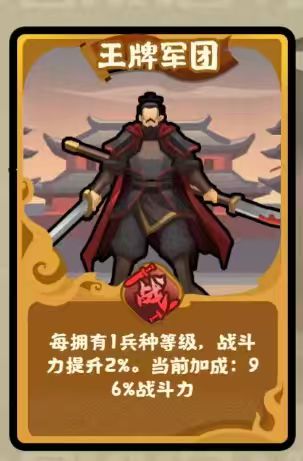 主要机制:这两个配合起来的益处就是你每打一场仗就可以升一个兵种的级,然后你的战斗力就加2%,新手五谷丰登的话一般战力略高,虽然损失很多兵但是越战越勇。