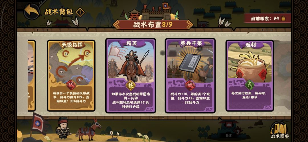 3.尽量把上面我说的这四种“战术”刷到1-2个,特别是“精英”,综合战术包里面有时会出有时候也可以在政策刷到(如果刷不到的话战力到了三百多也可以走)后期有的是机会(如果实在是不好刷那就边走边刷吧,粮食一定要多刷一些)