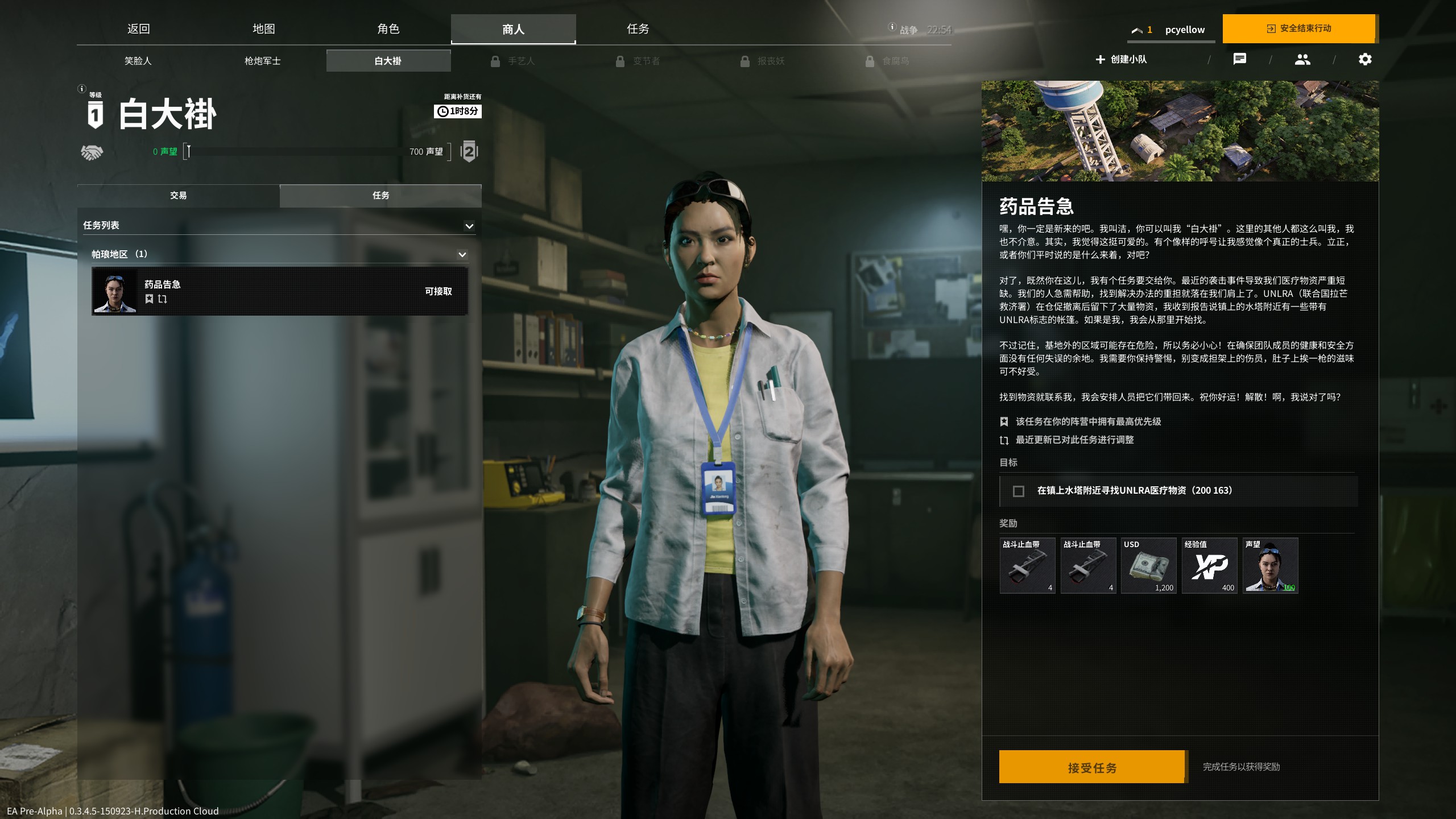 进入游戏之后是一脸茫然的,至少出一个新手教程吧,什么引导都没有,直接放到大地图里面,也没有,大地图的区域介绍以及玩法详解。相比以前,现在的版本好歹是有了中文,进入地图之后,点击菜单可以接到任务,能够查看大地图等等,在查看自己的装备没问题就能去呼叫直升机或者跑得去,去往任务地点做任务,做完之后再去最近的哨站或者大本营提交任务,整顿物资。