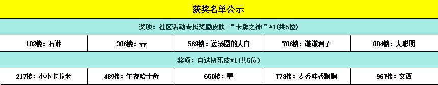 1、随机抽取5位小骑士,赠送社区活动专属奖励皮肤-“卡牌之神”*1!