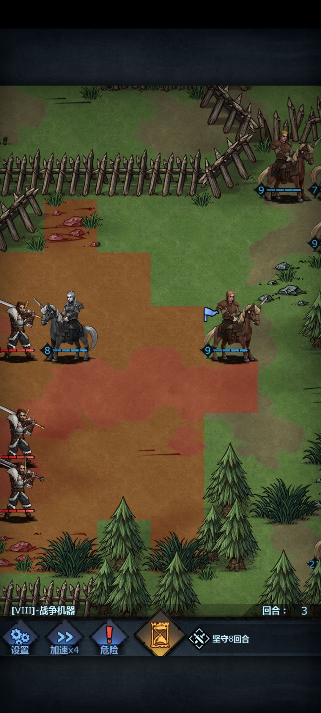 刚好有个战争机器,带旗子的这个位置需要一个骑兵,别的随便了,记得用上女王密令