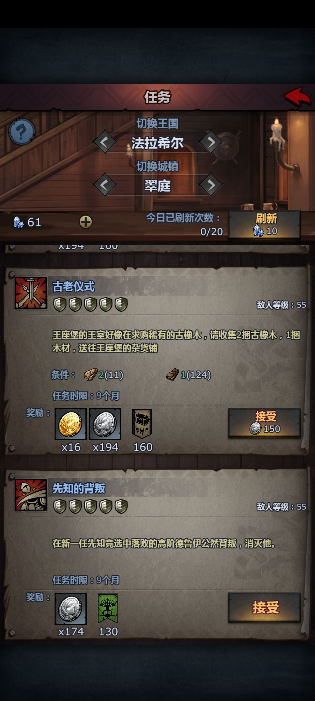没做出德鲁伊唤风弓长弓等级不够六盾只能打危险行为斩首,不建议用密令经验太少。直接斩首拿材料就行。长弓能秒六盾的游侠时候六盾就能正常打了,大概五十五级左右,王禁需要能抗