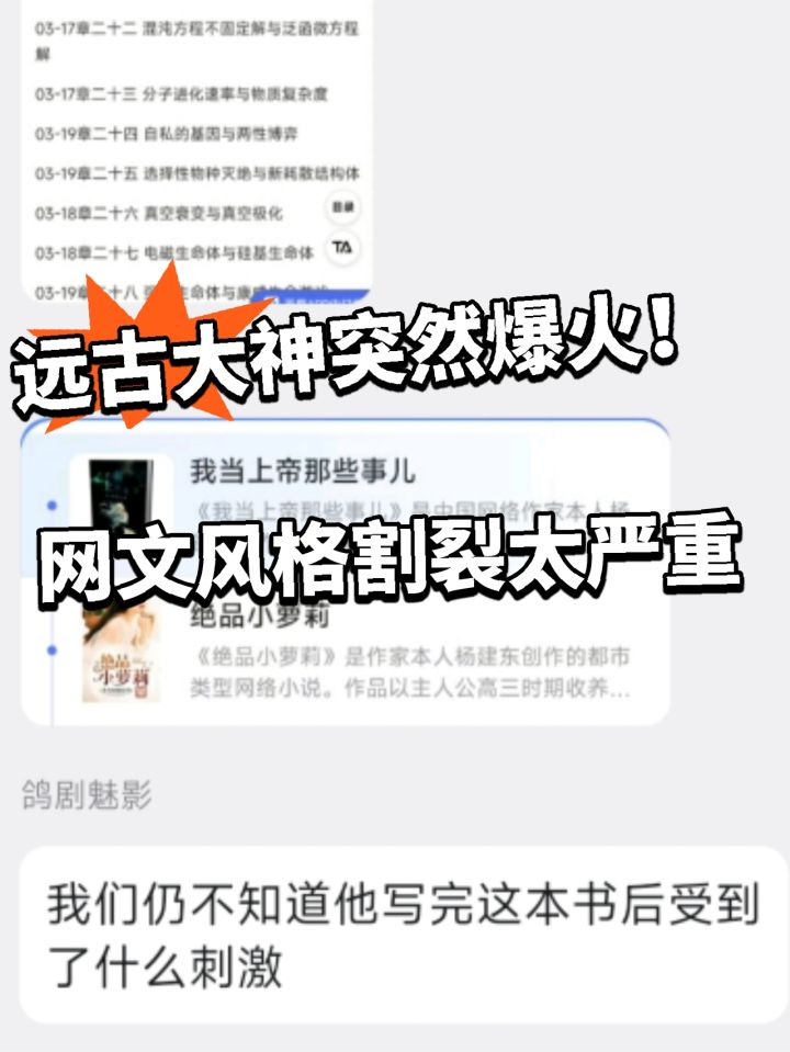 原因是某些不清楚此作者的网友觉得写的这两本小说是开玩笑前一本还写小萝莉,后一本直接就我当上帝那些事。 上帝这本书堪称巅峰之作,写的十分有才,而有网友觉得书名风格转变如此之快,是受了什么刺激