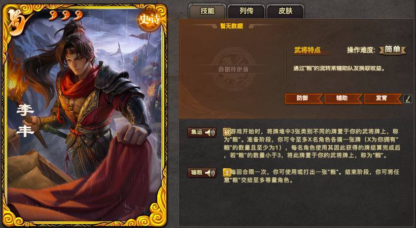 整体上来说,李丰这个武将还是比较容易上手的,作为辅助的能力也并不差,性价比很高。简单来说,实战对局中李丰需要尽力做到以下两点: