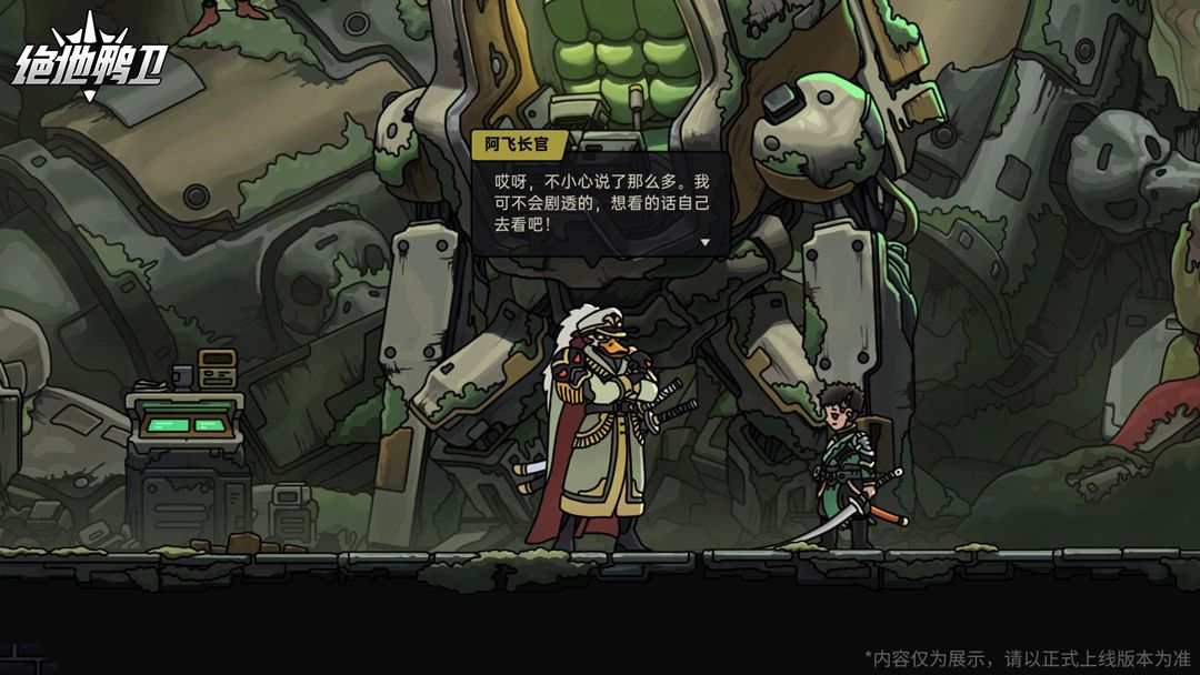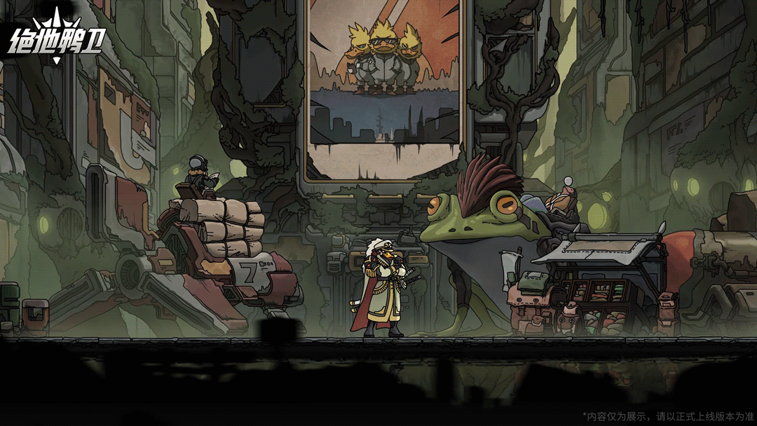 《绝地鸭卫》是一款末世废土题材,融合生物朋克元素的2D平台动作肉鸽游戏。
