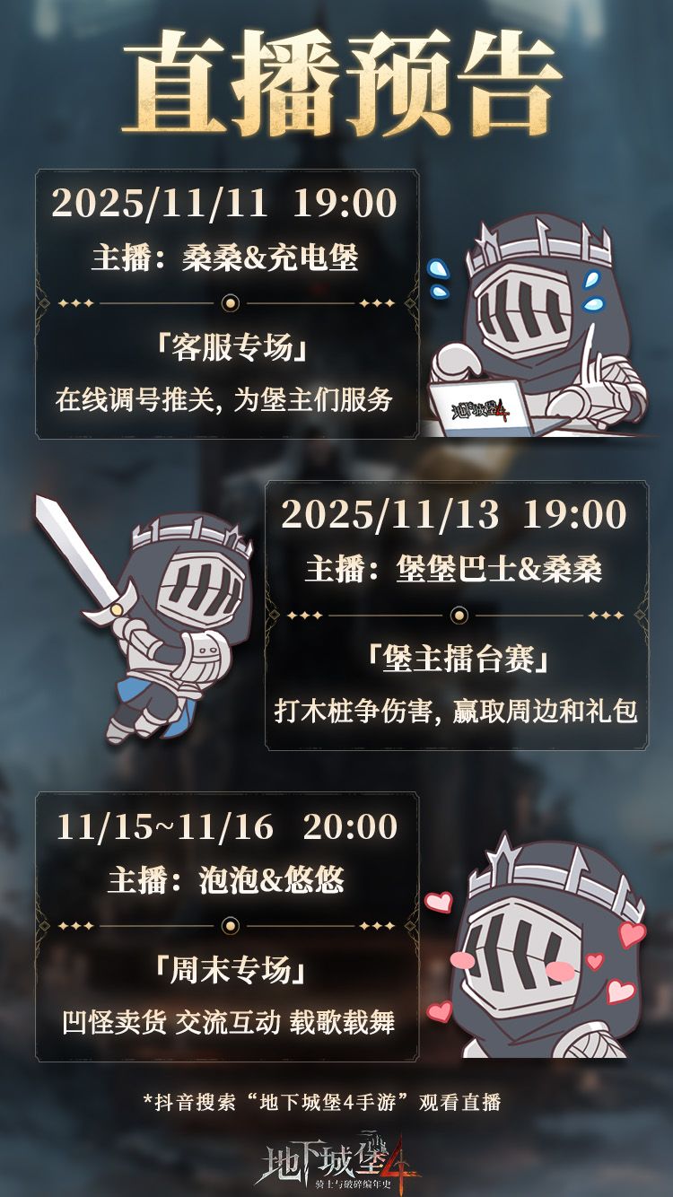 周四晚上,锁定“地下城堡4手游”抖音直播间!无论是想一战封神,还是想试试手气,这里都有专属你的舞台和奖励!记得提前报名,我们不见不散!