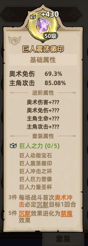 作为冲击英灵的专属圣遗物套装,巨人之力能使得冲击英灵的【沉默】效果产生质变。