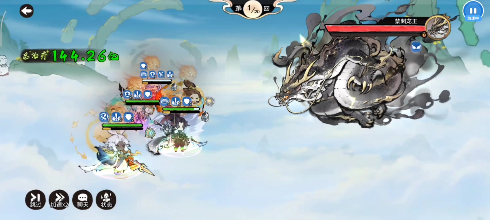 银无月,涌雷套+遮天胚子,优选2阶鳞或者4阶鳞(2阶提供攻击,4阶提供伤害加成),技能玄岩+应龙,速度快于BOSS慢于舞,选择应龙是因为被动效果释放法宝技能后减一回合法宝技能CD和主动满回复的蓄力,加上兵开神甲锁血2回合,舞带4阶羽毛减一回合功法技能CD,不演员(放职业技能)做到无缝套盾和神甲