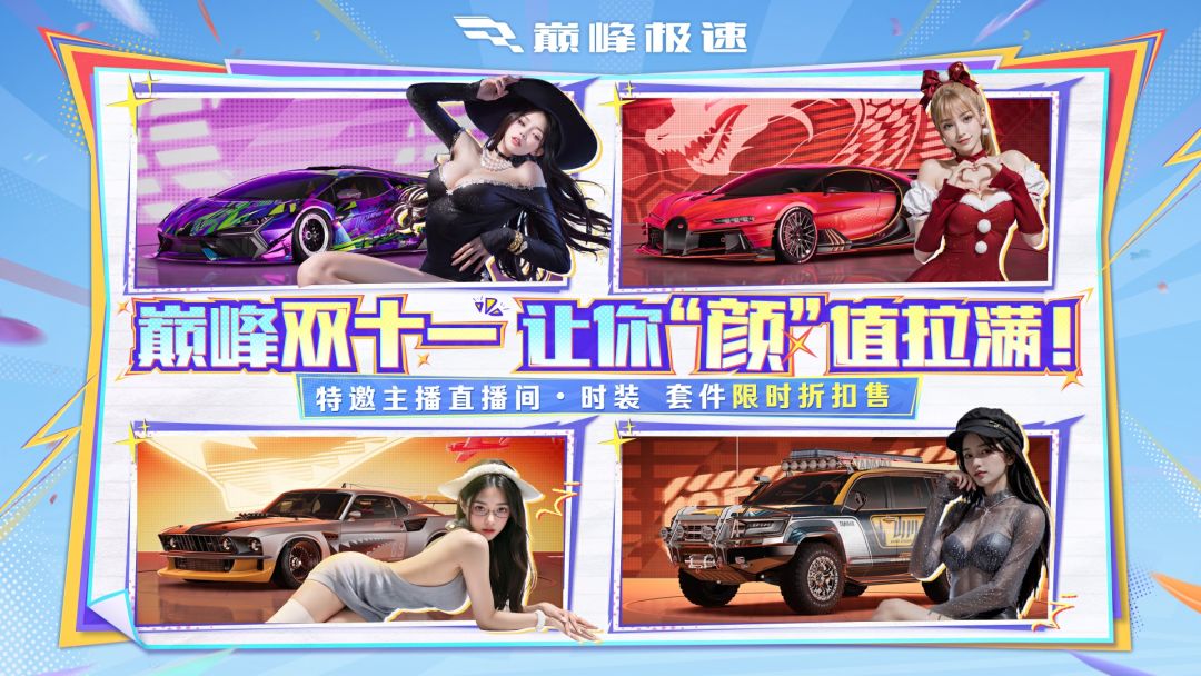 巅峰双十一就要痛快购,赛道上才能一路GO GO GO!车手们快把目光锁定至抖音巅峰极速主播直播间!