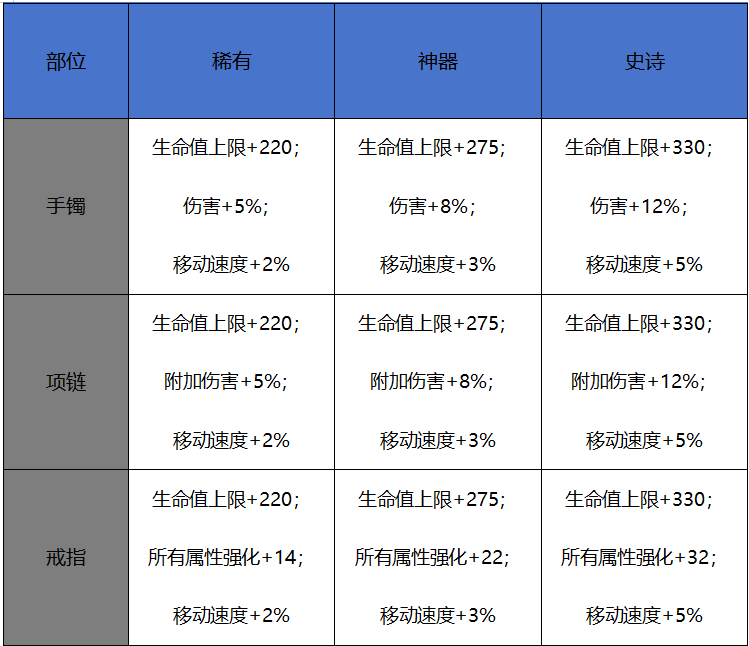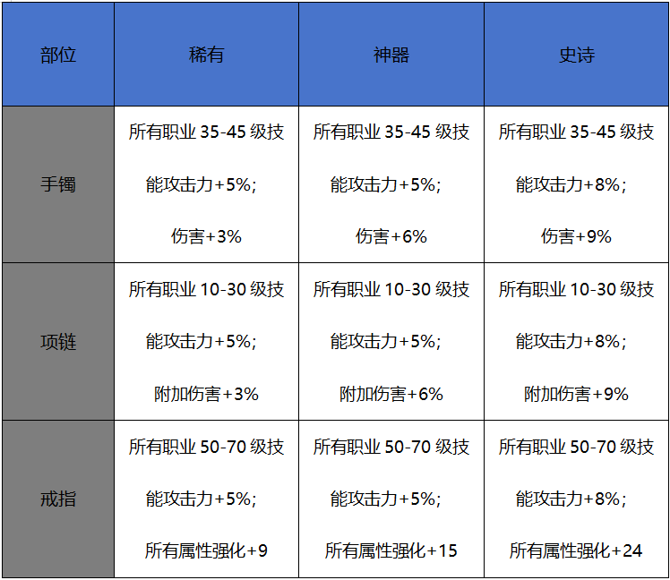 新增首饰部位融合装备属性汇总