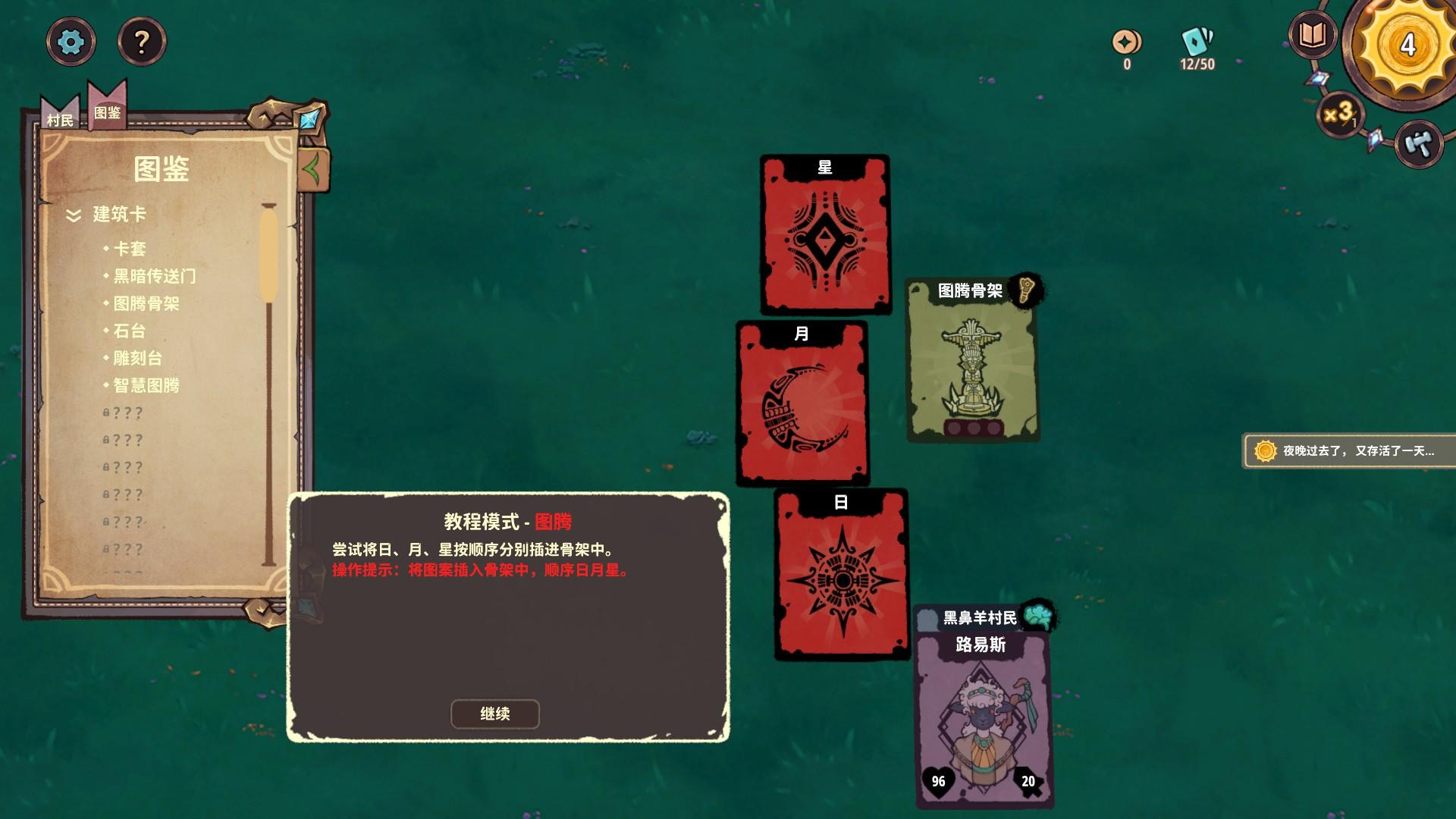 羊族建筑是通过将图案插入到图腾骨架中得到的,将日月星插入得到木材图腾,月日星则是石材图腾,羊族建筑卡右上角的则是风化值,风化值随着时间逐渐降低,生产交互时下降更快,归零后建筑销毁,同样卖给献祭图腾会出现怪物卡包。羊族单位卡右上角则是理性值,交互生产时逐渐降低,归零会直接死亡,需要食品卡补充。