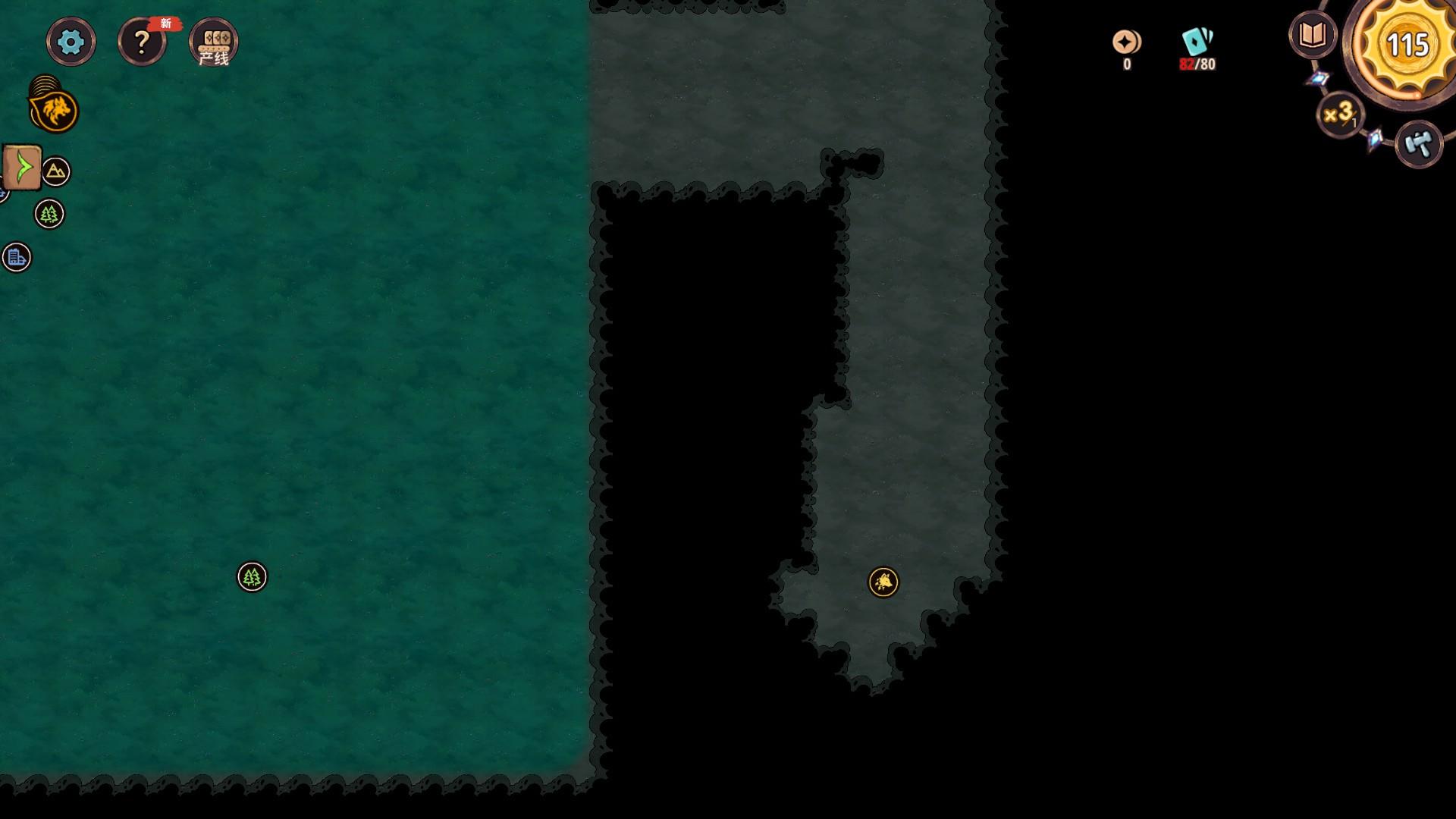 作为新手,首先出现在眼前的是一款绿色的草坪,这里就是游戏中所说的彩色地块,我是键鼠操作,通过放大缩小鼠标滚轮会切换上帝视角的远近,看到一款正方形的草坪,四周都是黑色迷雾,卡牌的形态也会因为较远而变成图标,部分资源材料卡会不再显示,需要放大一定距离才能恢复卡牌的外形从而进行堆叠使用。