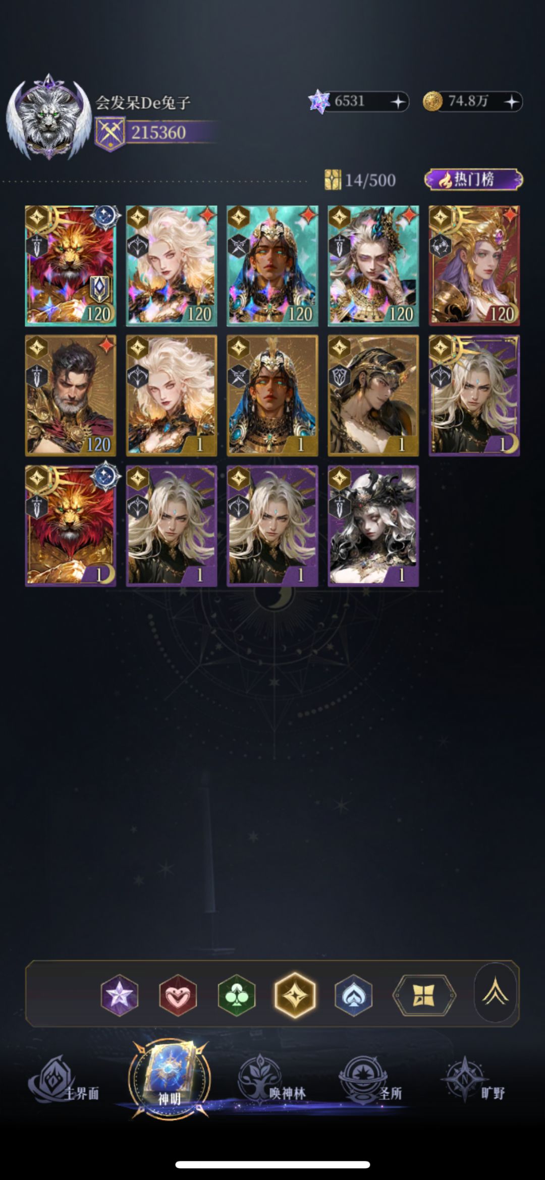 多余的话我就不多说了,为什么不养力神跟女武神?因为不好抽等级不好提升,雅典娜到绝品后可以把心愿换成力神。图上所示只是个人观点大家可以根据自己的理解和爱好自己配队.