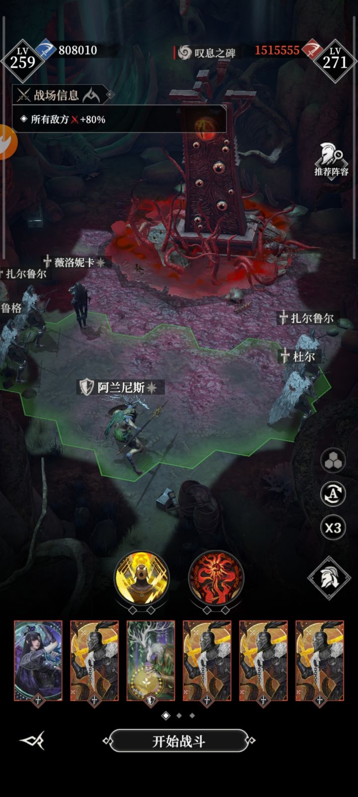 3、要点: 第一阶段会有两个黑骑去打小怪,这两个黑骑威力穿透必须保证能连续击杀小怪保持全体隐身,不触发boss技能群攻;夜莺最好有氪金红刀,击杀小怪的能量用来放技能,把靠上的小怪打掉点血,保证黑骑及时击杀小怪;然后第二阶段,全体挨Boss一次技能,保证存活多点就行了,话说我48潜力的黑骑都能存活,没压力;