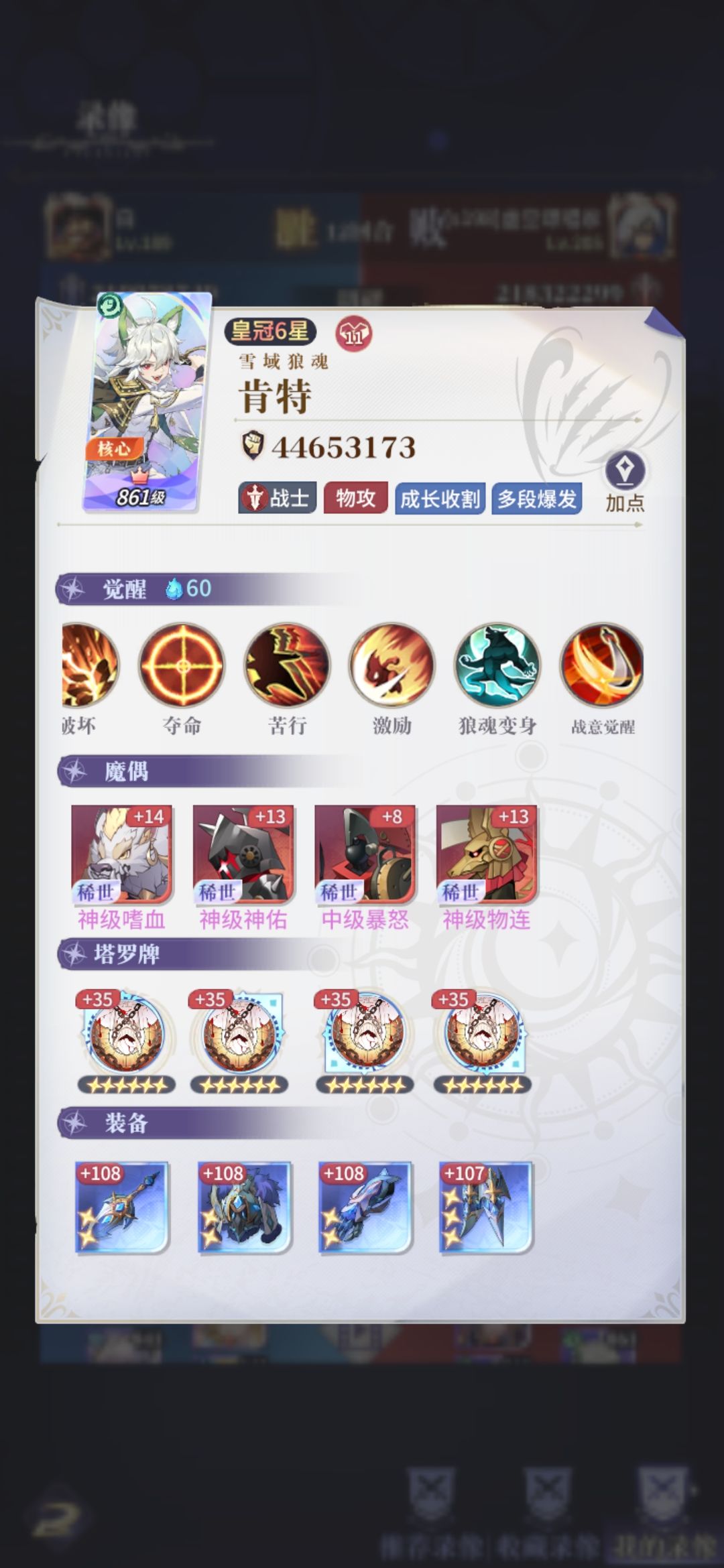 阿库娅强绑定力量塔罗牌(推测倒吊人更优)魔偶扼杀 物连 狂暴(或暴袭) 暴怒(三保二必须) 有余力再多养一个雪菲或者狼备用。