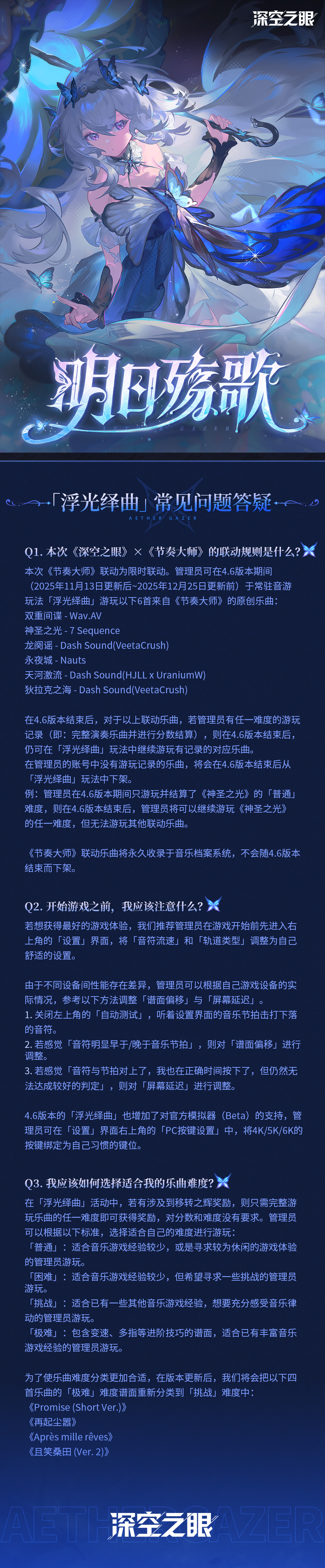 《深空之眼》常驻音乐游戏玩法「浮光绎曲」将于4.6版本更新后开启,《深空之眼》×《节奏大师》联动将同步限时开启!