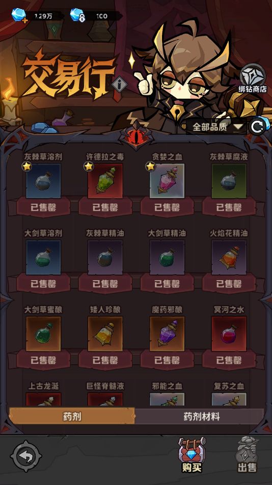 - 买入成功:购买到的道具将直接到账,请注意,这些道具会变为绑定状态,无法再次出售。