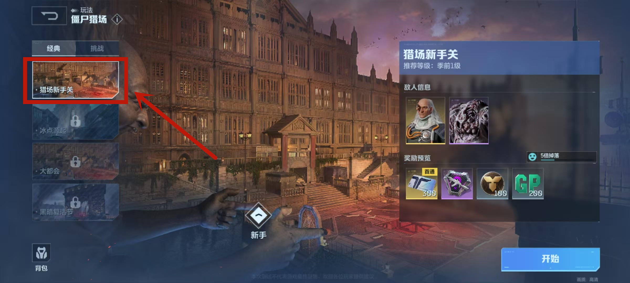 大家跟随上图指引步骤操作,即可来到经典猎场模式。