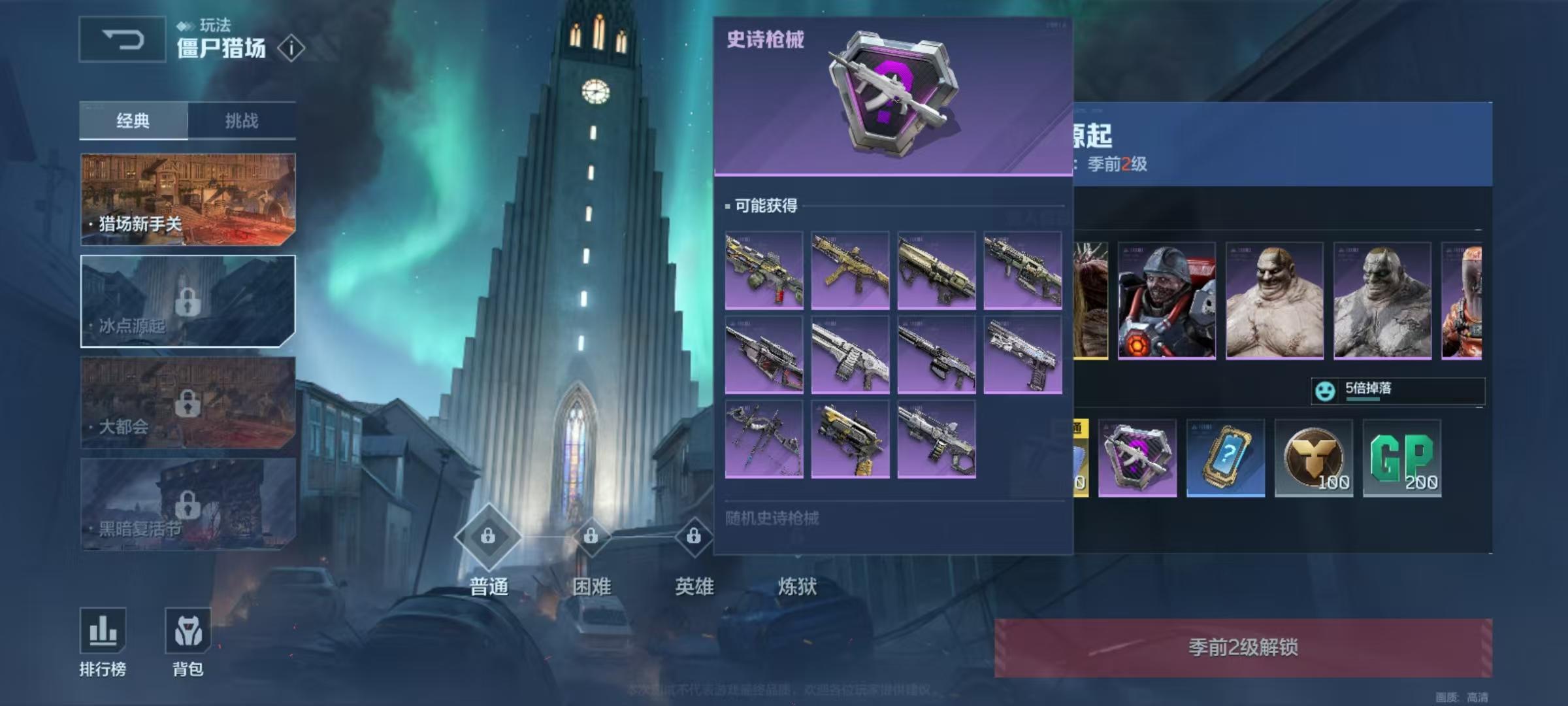 以冰点源起这张地图为例:普通难度通关后,最好的奖励就是史诗枪械,而挑战难度通关后则是可以掉落传说枪械。