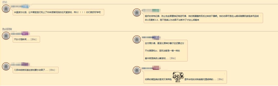 但争议焦点集中在场景元素(篝火、栅栏布局)、角色动作(钓鱼动作)及交互逻辑(摇树掉果实、采花)上,大量玩家指出这些内容与《动物森友会》近乎一致,被质疑 “复制粘贴式抄袭”,玩家阵营分裂为 “换皮抄袭” 指责派与 “借鉴创新” 捍卫派。